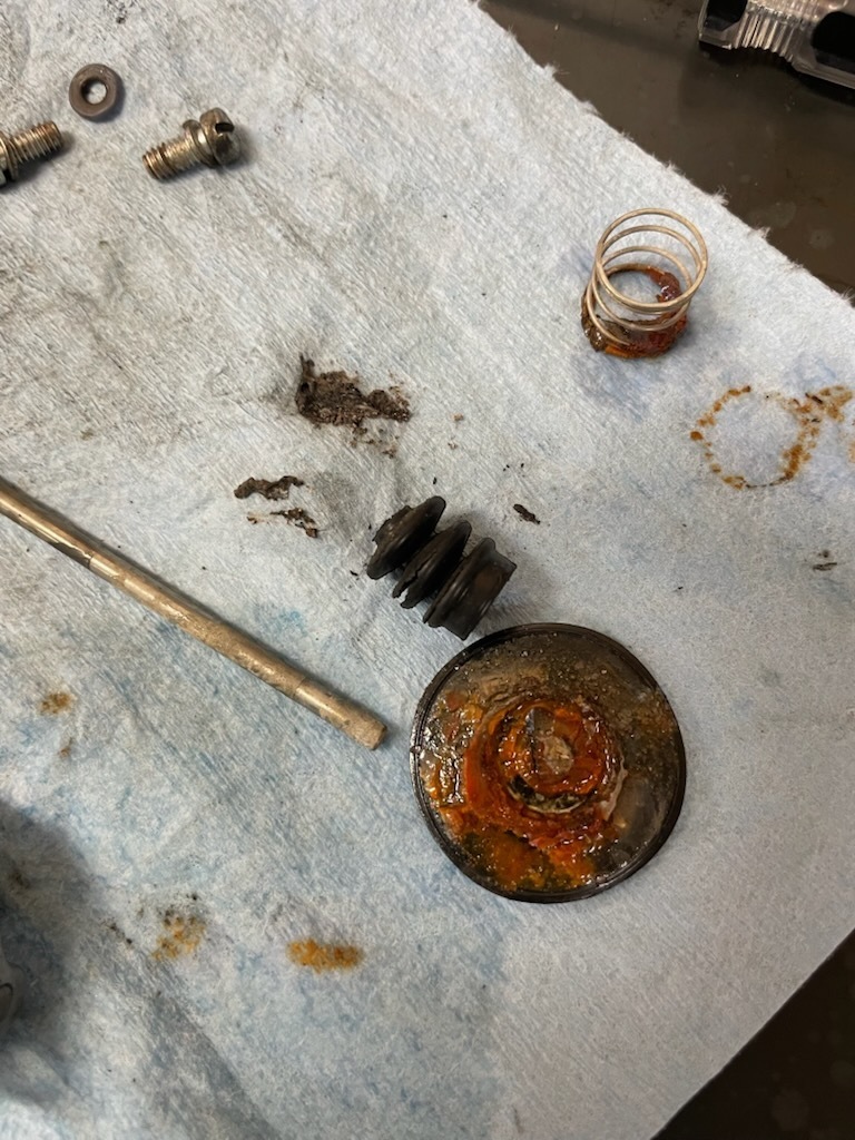 キャブを除くと加速ポンプの所のジャバラが割れてました