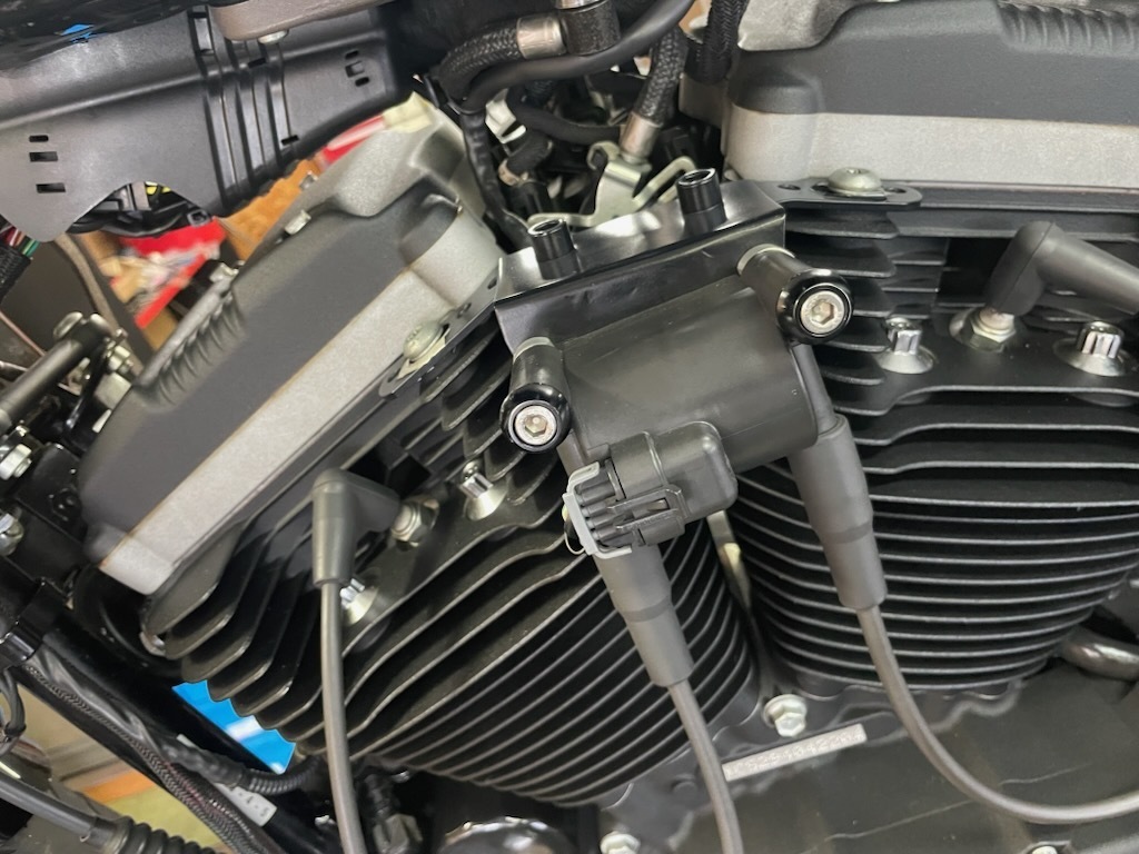 古い車両で言うとFXRもエンジンマウントの所にコイルがあります